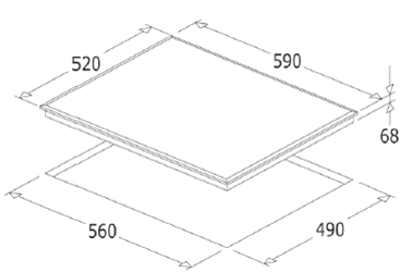 Bếp có kích thước tổng thể là 590R x 520S x 67C mm, phù hợp với hầu hết các không gian bếp hiện đại. Kích thước khoét lỗ lắp đặt là 560R x 490S mm, giúp việc lắp đặt trở nên dễ dàng và thuận tiện.