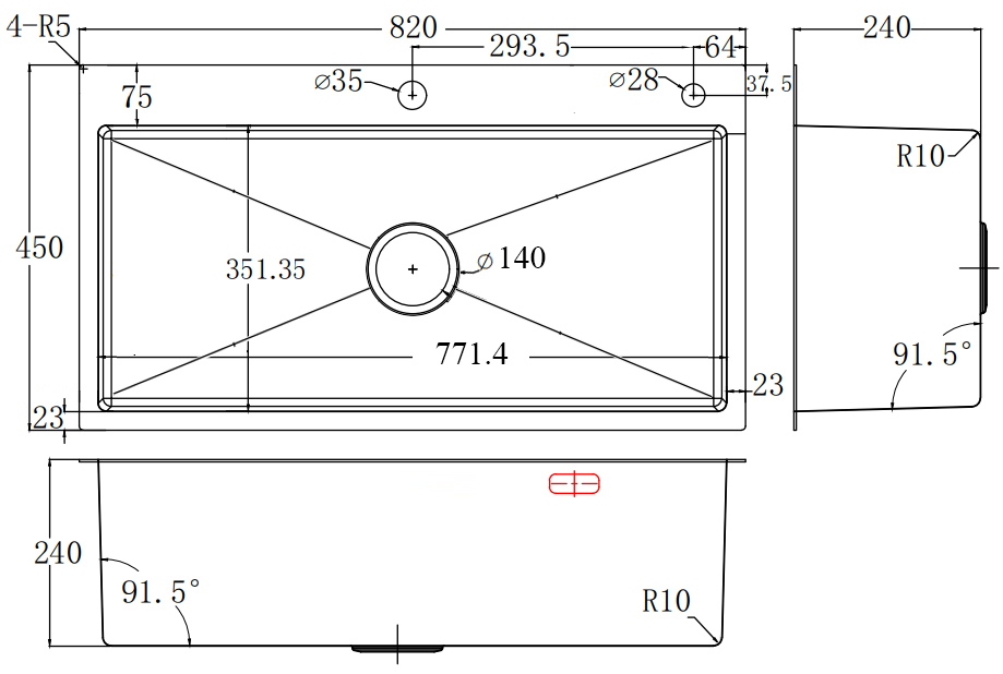 - Kích thước chậu: R820 x S450 x C240 (mm).