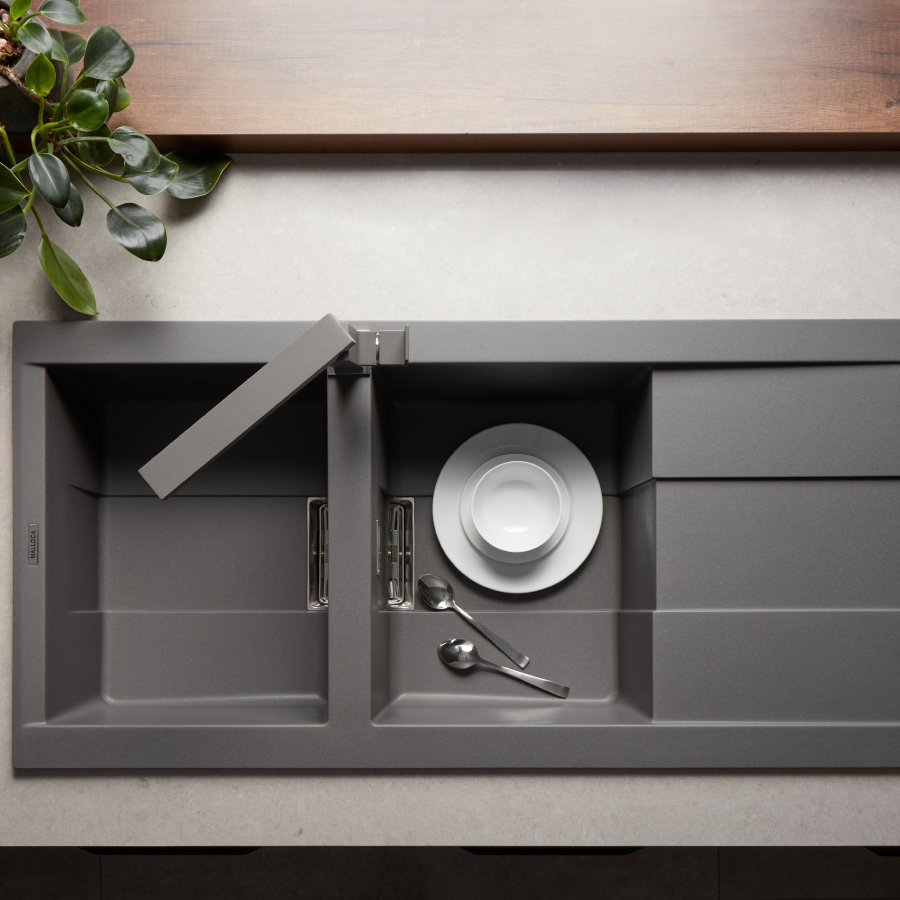 Chậu rửa đá Malloca SMART K-500 màu xám là điểm nhấn hoàn hảo cho những căn bếp đề cao sự sang trọng, bền bỉ và an toàn. Được sản xuất từ bột đá granite tự nhiên kết hợp với chất kết dính cao cấp, sản phẩm sở hữu độ cứng và khả năng chịu lực vượt trội, đáp ứng tốt nhu cầu sử dụng hàng ngày.