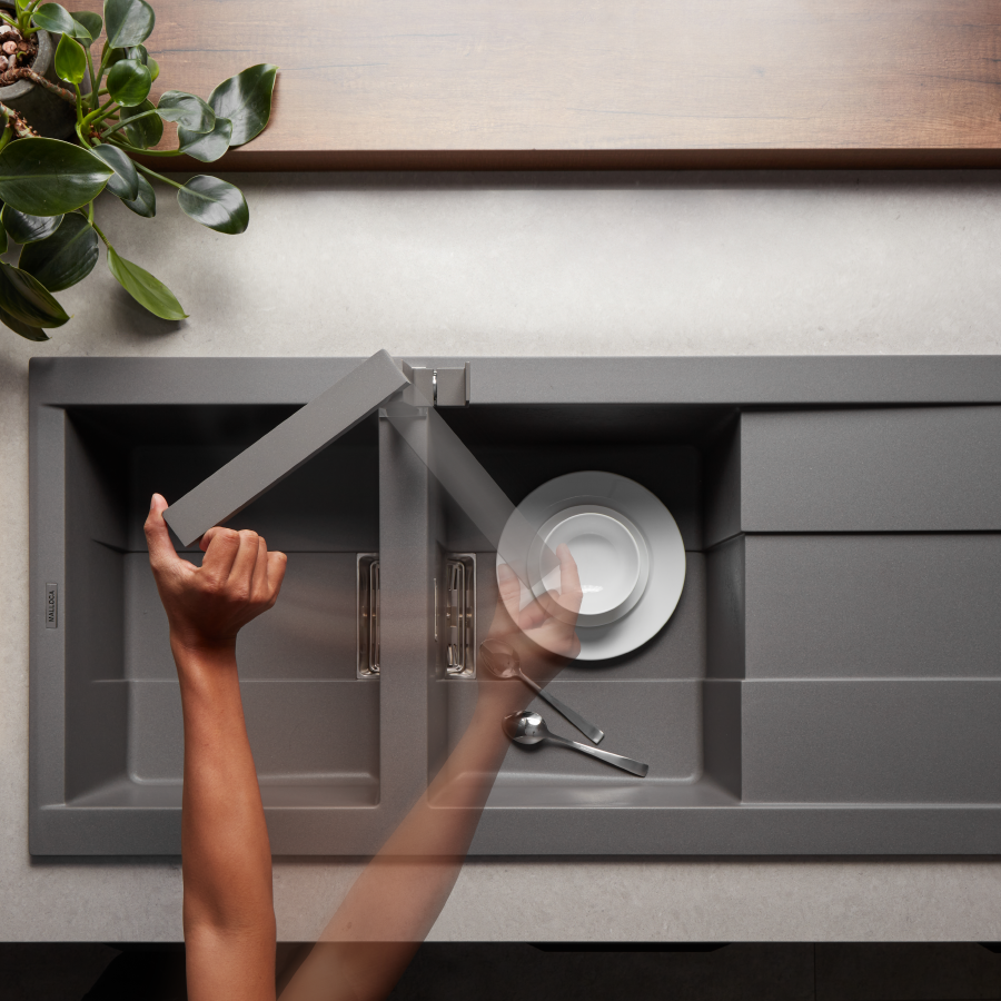 Malloca SMART K-500 có màu xám trung tính, hiện đại, dễ dàng kết hợp với nhiều phong cách nội thất bếp khác nhau. Màu sắc được xử lý bền vững, không phai, không ố vàng theo thời gian, kể cả khi tiếp xúc thường xuyên với nước và hóa chất tẩy rửa nhẹ.