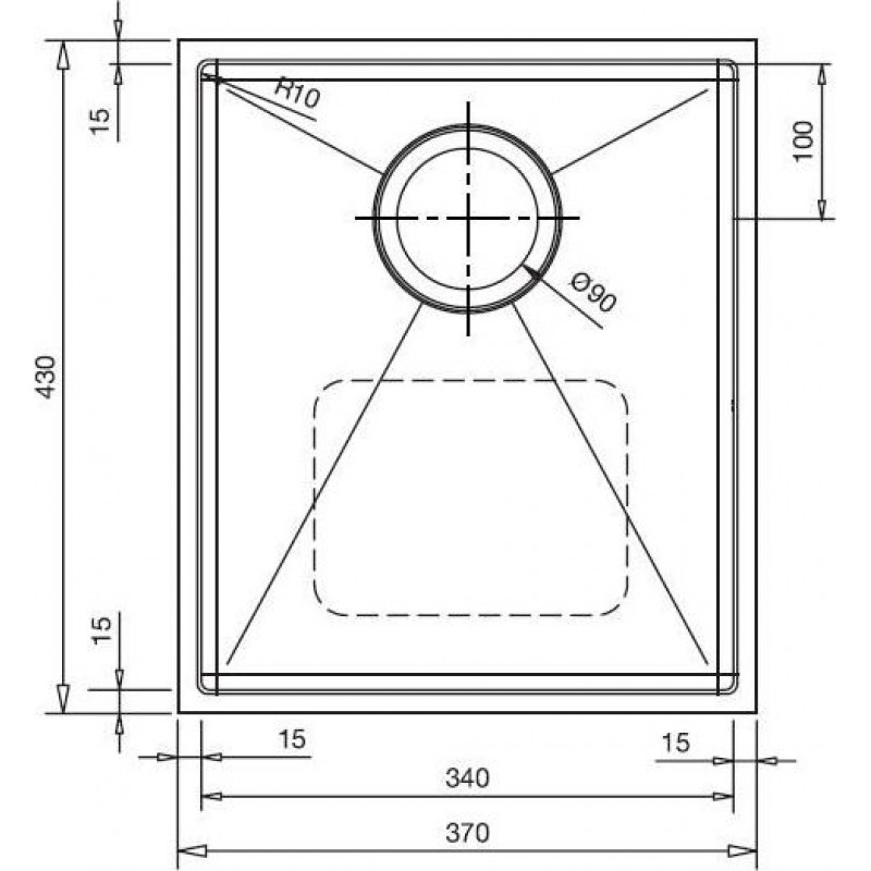 Chậu Hafele HS‑S3743 là mẫu chậu rửa âm bàn đơn, tạo sự liền mạch với mặt đá bếp, giúp gian bếp hiện đại thêm phần tinh gọn. Kích thước tổng thể là 370 × 430 × 220 mm (D × R × S), lòng chậu bên trong khoảng 340 × 400 mm, độ sâu đến 220 mm, rất phù hợp với các ô tủ có chiều ngang từ 400 mm trở lên. Thiết kế góc bo trong lòng chậu 10° giúp hạn chế dòng cặn bẩn, dễ vệ sinh hơn.