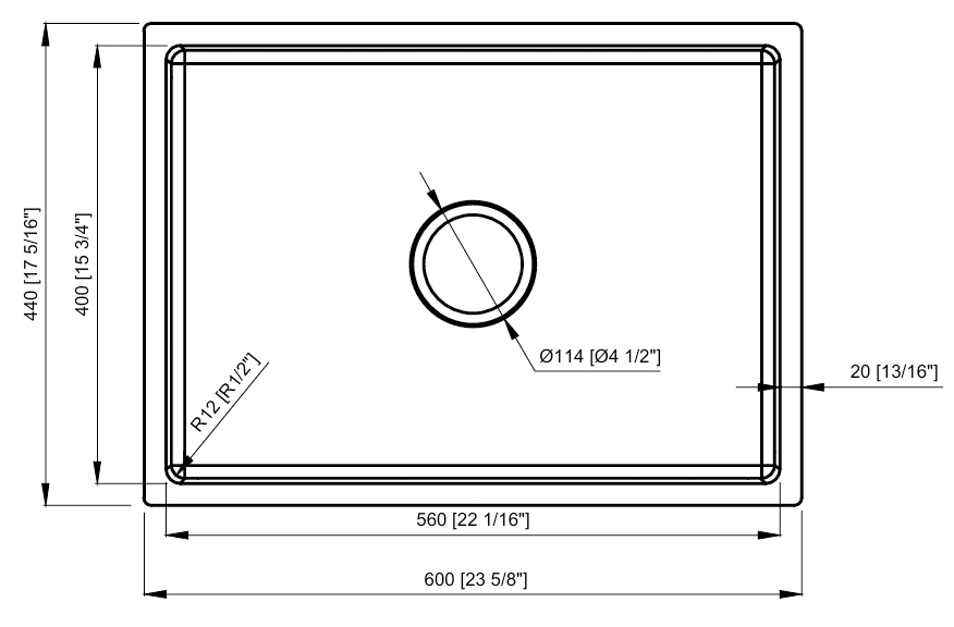 - Vệ sinh lòng chậu dễ dàng với góc lượn R12 mm