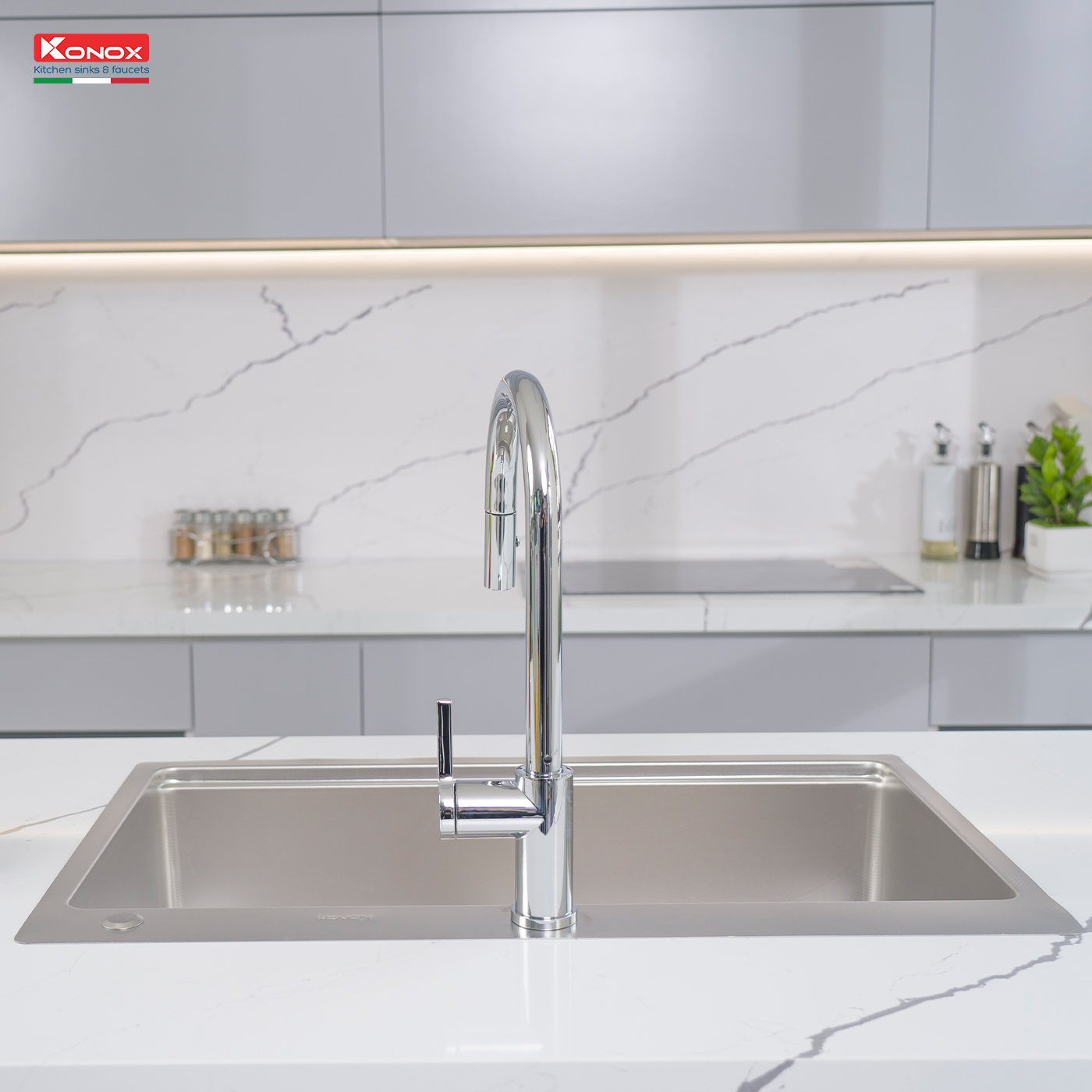 Trong thế giới thiết bị nhà bếp ngày càng phát triển, việc lựa chọn chậu rửa bát không chỉ dừng lại ở yếu tố chức năng mà còn cần sự kết hợp hoàn hảo giữa thẩm mỹ, độ bền và tiện nghi. Một trong những sản phẩm nổi bật hiện nay chính là chậu rửa Konox KN8151TS Dekor – mẫu chậu rửa đơn cao cấp với thiết kế Dekor sang trọng, là lựa chọn lý tưởng cho không gian bếp hiện đại. Cùng KITHOME khám phá chi tiết sản phẩm này trong bài viết dưới đây.
