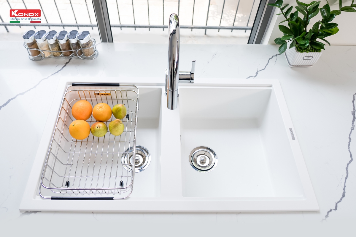 Chậu rửa Konox Phoenix Smart 860 White Silver – Vẻ đẹp sang trọng, bền bỉ vượt thời gian cho gian bếp hiện đại