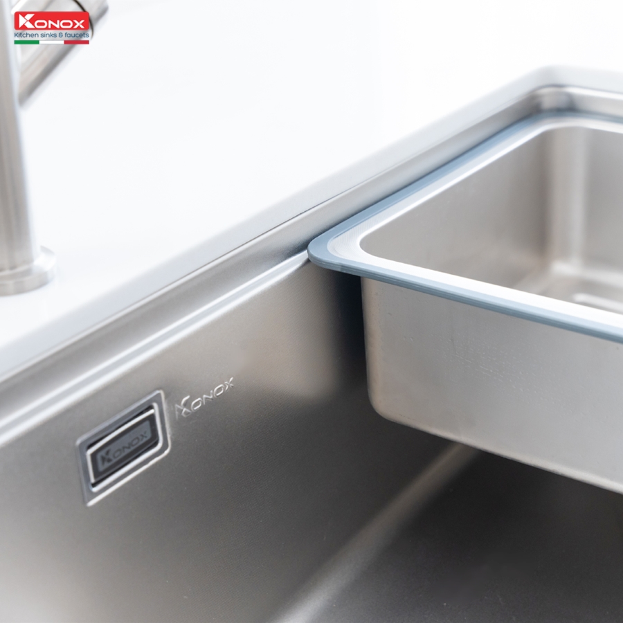 Sử dụng chậu rửa bát Konox sẽ cảm thấy rõ được sự khác biệt vượt trội so với những sản phẩm thép không gỉ thông thường, nâng tầm trải nghiệm của bạn và đem lại sự hài lòng và tin tưởng tuyệt đối.