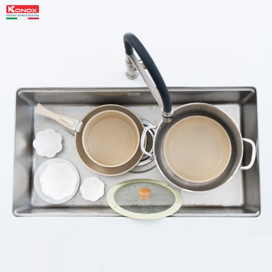 - Chậu rửa Konox Tari 8748SR Basic 1 hố kích thước rộng.