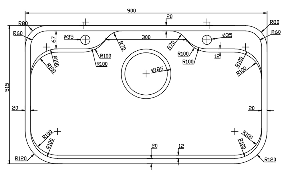 - Vệ sinh lòng chậu dễ dàng với góc lượn R100 mm