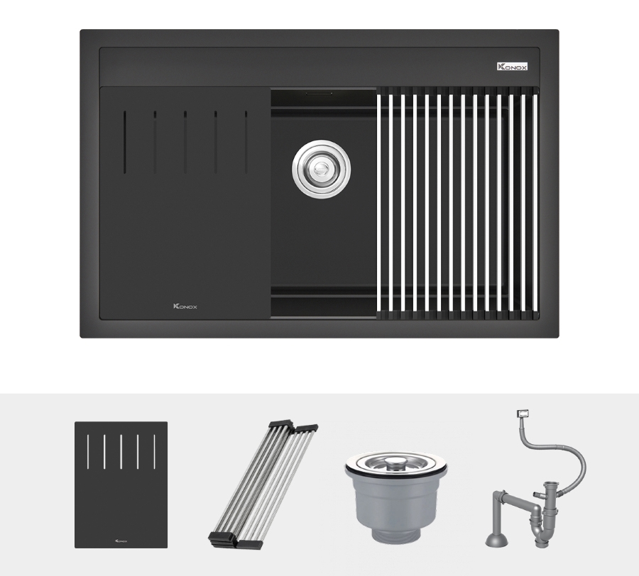 Chậu rửa Konox Granite Sink Terra 790S Black | Kiệt tác Ý trong lòng bếp Việt | Điểm nhấn cho gian bếp của gia đình bạn