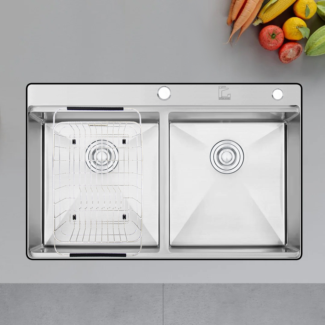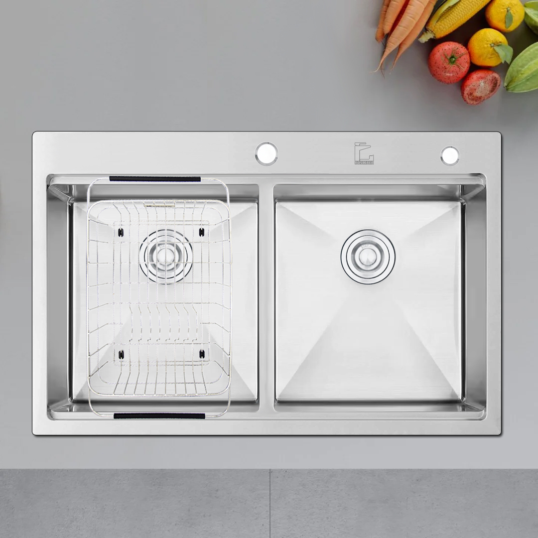 - Có 2 lỗ vòi (vòi rửa, vòi nước lọc hoặc bình đựng nước rửa gắn chậu) chờ lắp đặt