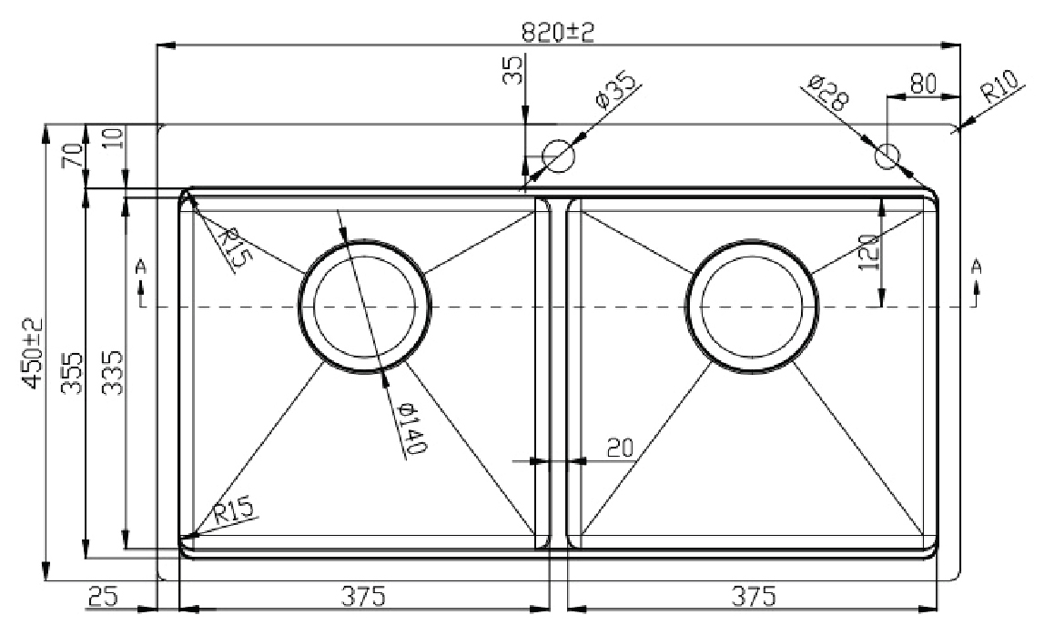 - Vệ sinh lòng chậu dễ dàng với góc lượn R15