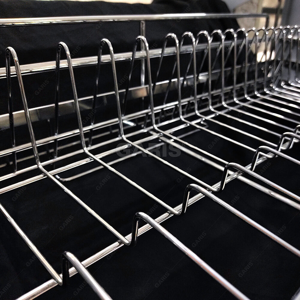 Giá bát đĩa nâng hạ Inox 304 nan dẹt mạ Chrome 5 lớp 700mm Garis GL06.70C thiết kế phía dưới mỗi tầng là khay hứng nước được làm từ chất liệu nhựa cao cấp viền bọc nhôm chống cong. Tránh cho việc nước nhỏ xuống tủ làm hỏng tủ. Khay hứng nước rất dễ tháo lắp thuận tiện cho việc lau dọn, vệ sinh.
