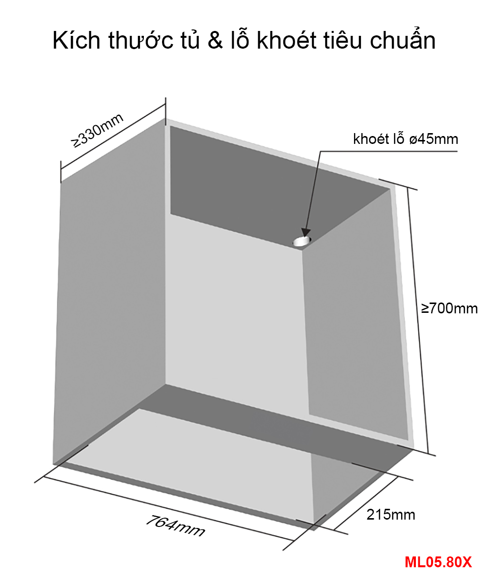 | Mã sản phẩm | Rộng x Sâu x Cao (mm) | Khoảng hở đáy tủ (mm) |