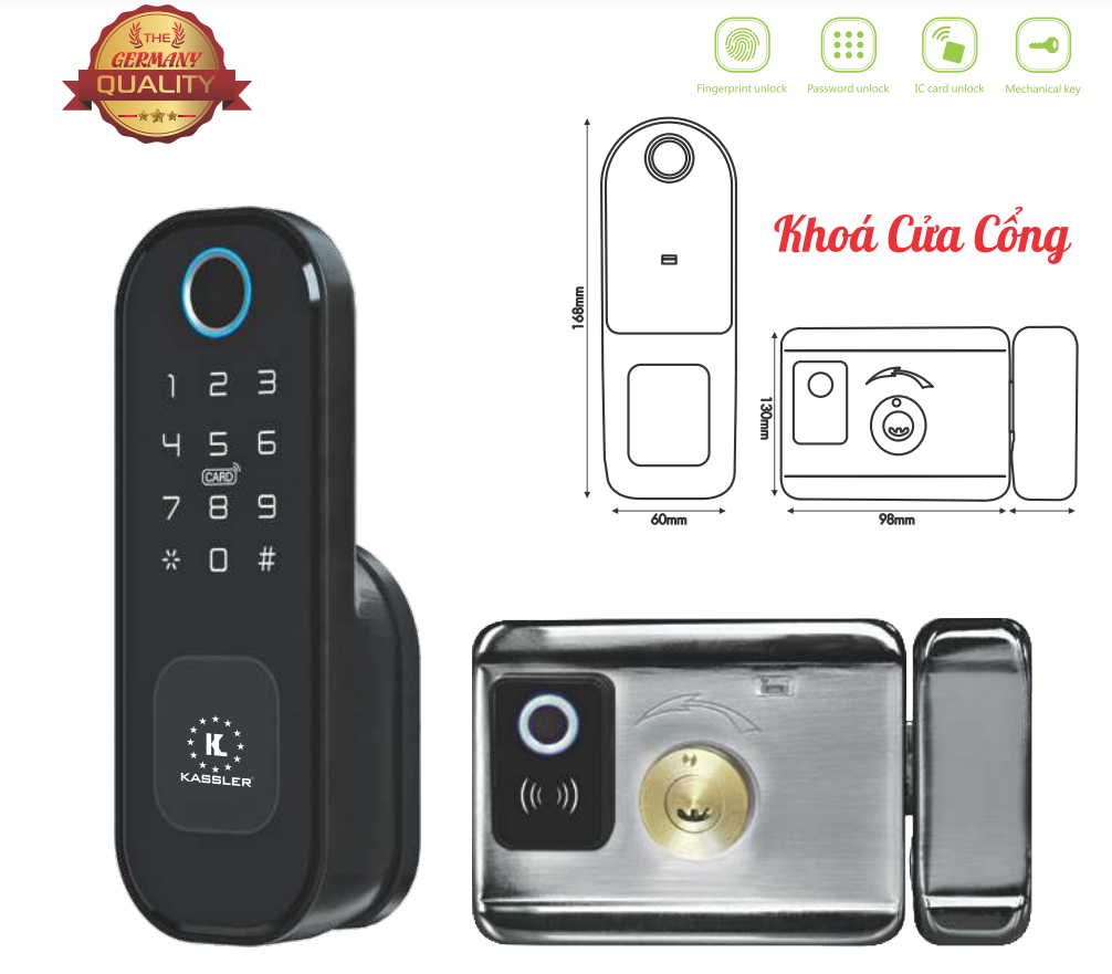 Trong thời đại an ninh ngày càng được chú trọng, việc sử dụng khóa cơ truyền thống cho cổng hoặc cửa sắt đã không còn đảm bảo an toàn tuyệt đối. Giải pháp tối ưu hiện nay chính là khóa cửa cổng, cửa sắt vân tay Kassler KL-579BL, sản phẩm chuyên dùng cho môi trường ngoài trời, với khả năng chống nước, chịu nhiệt tốt và tích hợp công nghệ mở khóa hiện đại.
