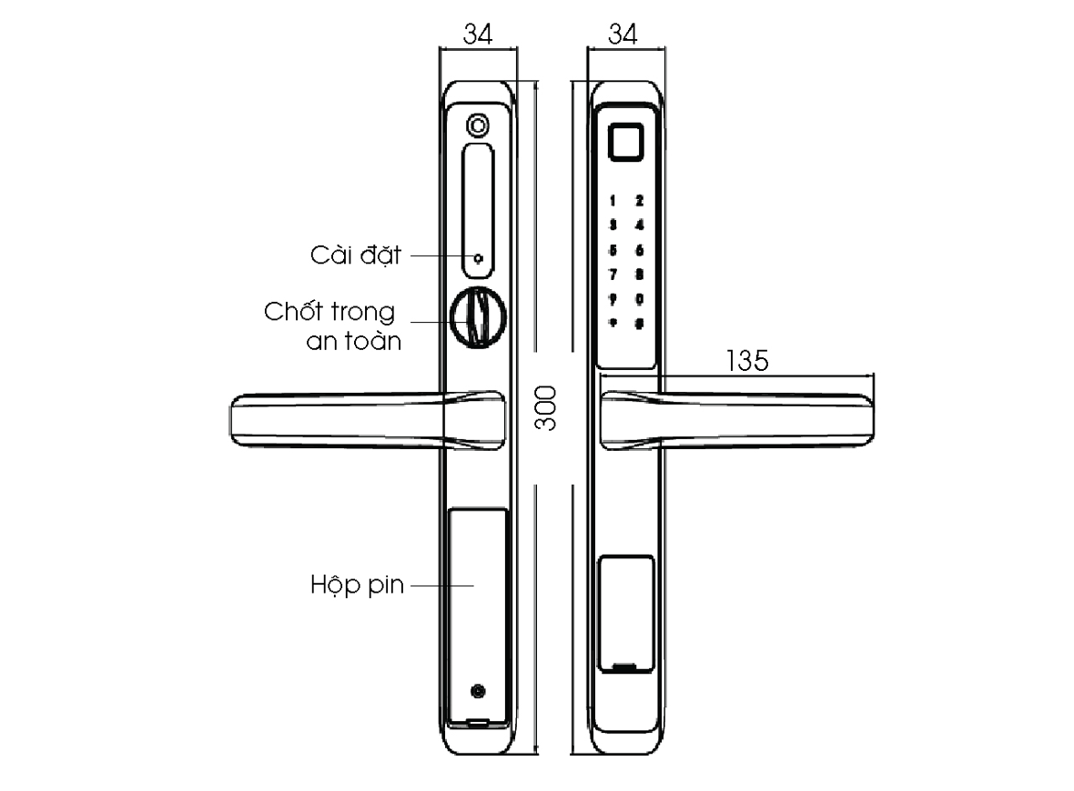 | Cảnh báo an ninh | Cảnh báo phá khóa, cảnh báo pin yếu, cảnh báo nhập sai |