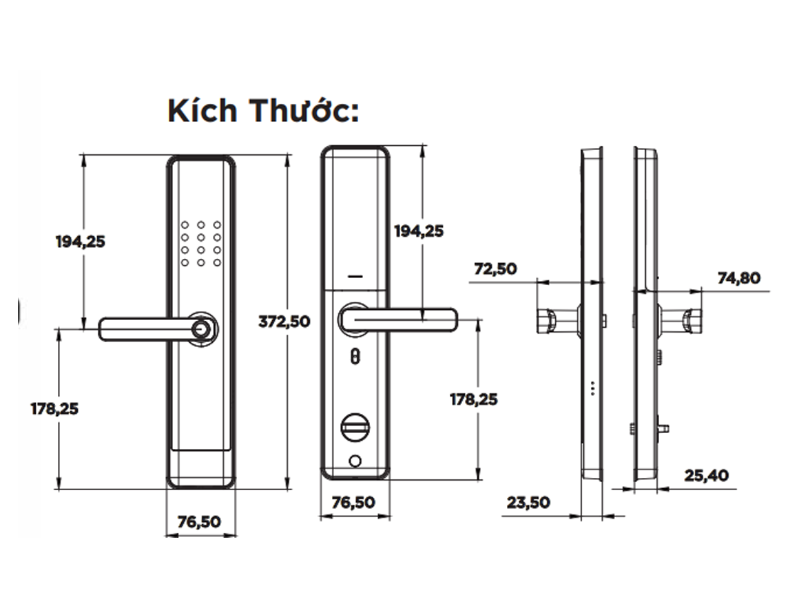 | Kích thước khóa | 380mm x 78mm x 25mm |
