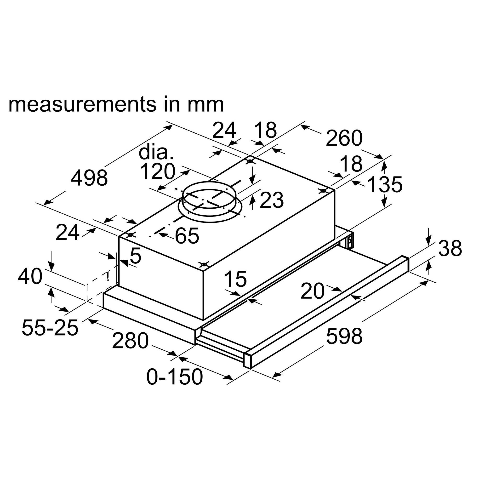 Máy hút mùi Bosch DFT63CA61B được lắp vào một vị trí âm tủ bất kì trong bếp. Để vận hành thiết bị này, bạn có thể kéo phần mặt phẳng ra để mở rộng bề mặt tiếp xúc. Với loại máy hút mùi này, mặt trước của máy hút mùi Bosch DFT63CA61B có thiết kế đơn giản, dễ dàng hòa hợp với các thiết bị nhà bếp khác. Vì vậy chiếc máy hút mùi Bosch DFT63CA61B sẽ gần như vô hình trong căn bếp của bạn.