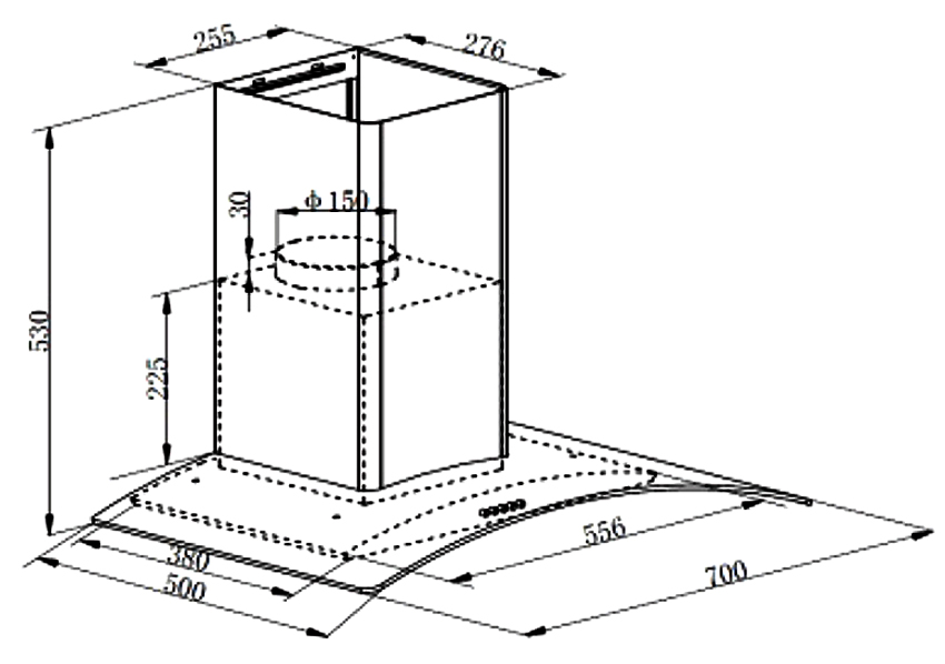 Máy hút mùi Faster FS 3388-70B có kích thước R700 x S500 x C530 (mm). Nhập khẩu nguyên chiếc chính hãng từ Faster.