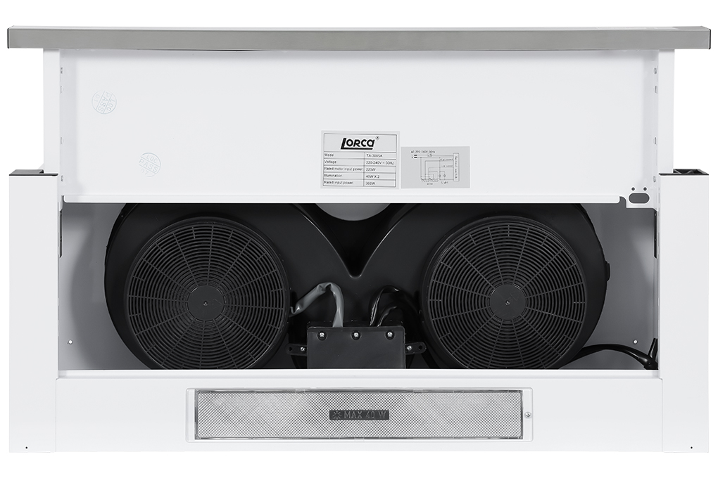 Cũng giống như các loại máy hút mùi cao cấp khác, máy hút mùi Lorca TA-3005A-70 cũng được trang bị đầy đủ đèn chiếu sáng đảm bảo đủ ánh sáng cho việc đun nấu. Máy sử dụng 2 motor đôi công suất 300W độ ồn thấp, độ ồn tối đa của máy khi hoạt động với công suất cao nhất là ở mức 46Db.