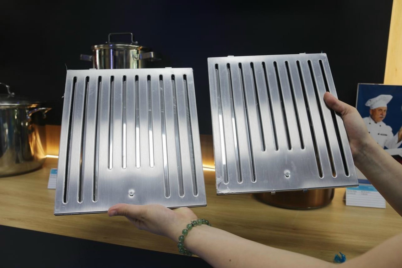 Hệ thống đèn chiếu sáng của máy gồm 2 đèn Led có tác dụng chiếu sáng và làm cho công việc nấu ăn thêm thuận lợi. Lưới lọc mỡ bằng inox dạng thanh nan để ngăn chặn triệt để mùi, bụi lọt vào bên trong máy gây hỏng động cơ. Tấm lưới này có thể tháo rời để vệ sinh một cách dễ dàng.