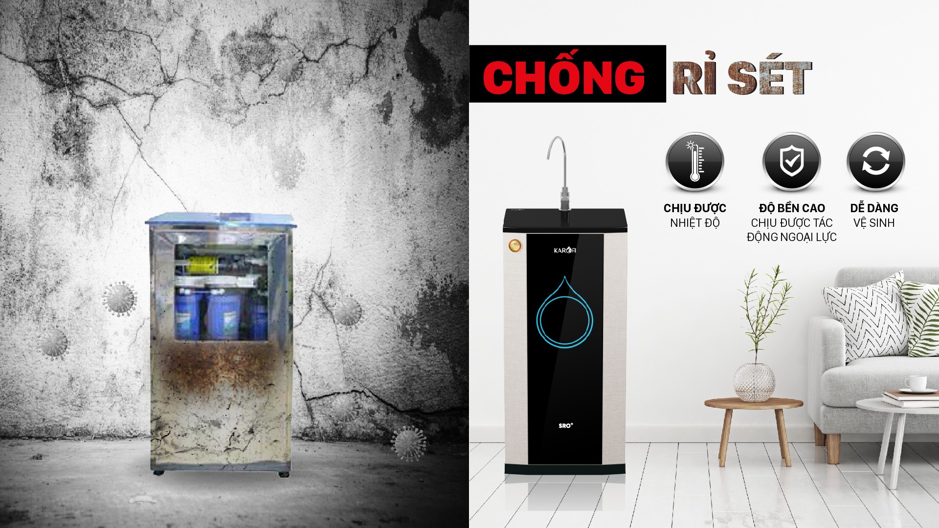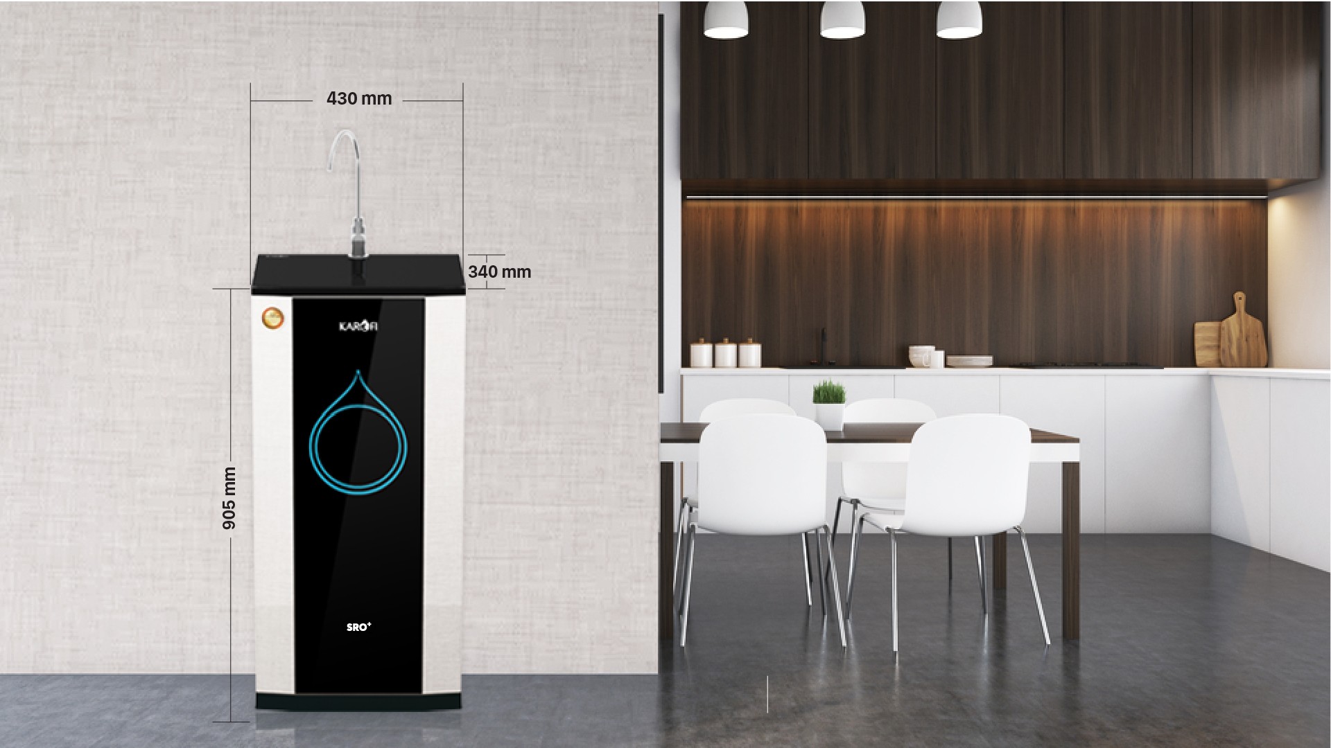 Không chỉ là một thiết bị chăm sóc sức khỏe, máy lọc nước gia đình đã ngày một trở thành một thiết bị gia dụng thiết yếu thể hiện phong cách sống, gu thẩm mỹ của chủ nhân. Máy lọc nước Karofi KSI90 Plus có thiết kế vỏ tủ bằng chất liệu HPC với màu sắc trang nhã dễ dàng hòa hợp với các đồ nội thất khác như sàn gỗ, tủ bếp, bàn ghế gỗ… và là điểm nhấn tinh tế cho căn nhà.