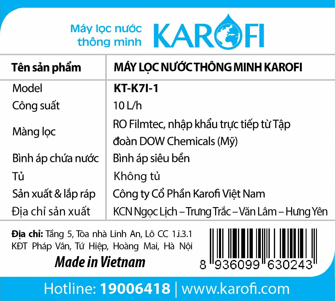 Có nguồn gốc xuất xứ rõ ràng: sản xuất và lắp ráp tại công ty cổ phần Karofi Việt Nam.