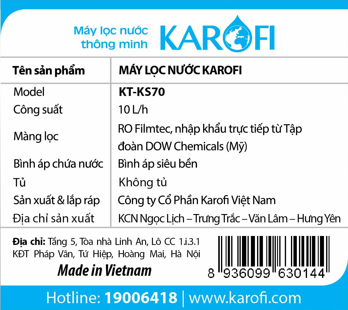 Không chỉ được trang bị nhiều công nghệ thông minh, hệ thống lõi lọc hiện đại, các sản phẩm máy lọc nước Karofi còn đáp ứng đầy đủ các tiêu chuẩn chất lượng về nước sạch, an toàn tuyệt đối cho người sử dụng.