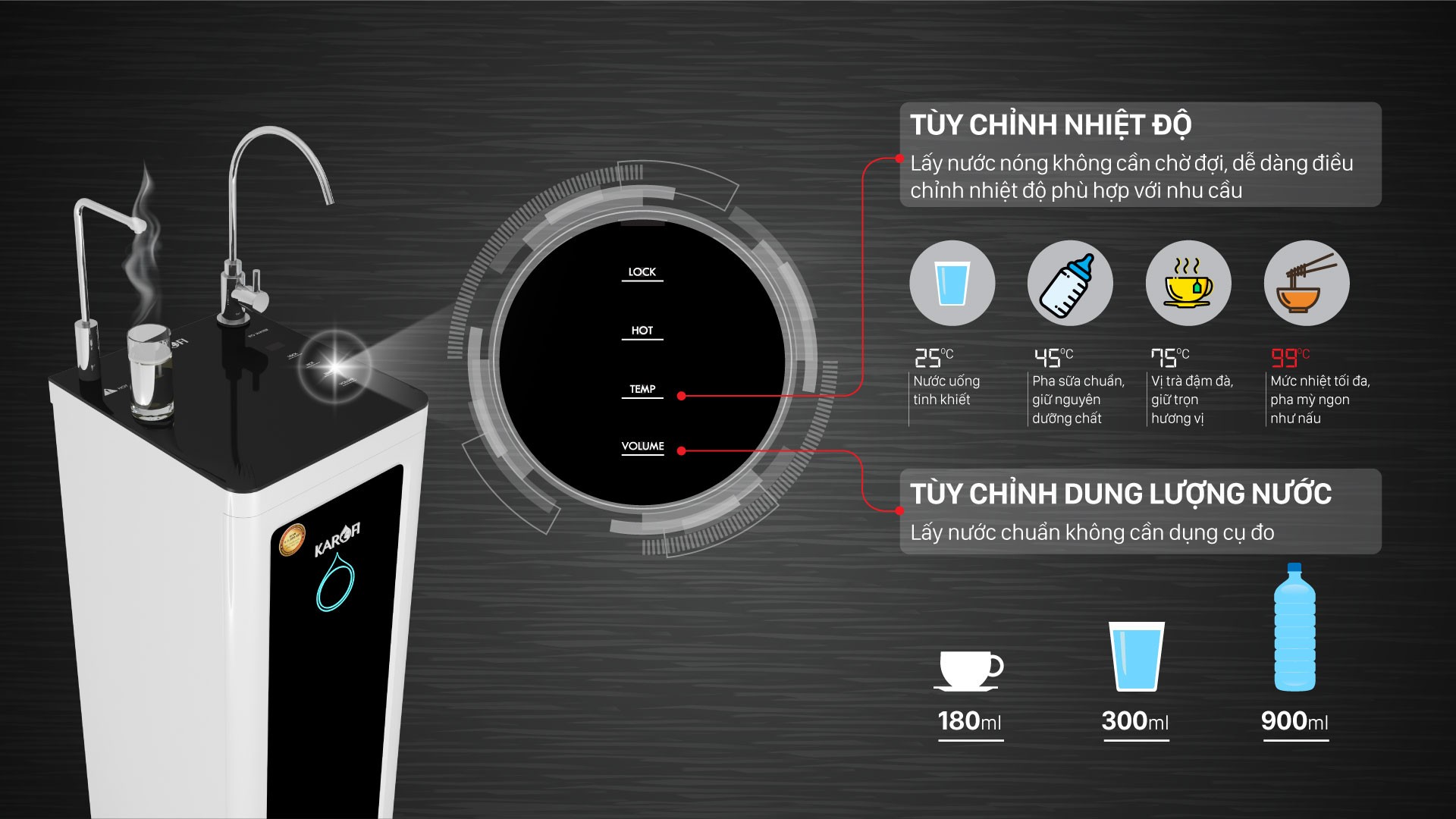 Thể tích nước lựa chọn | 180, 300, 900 ml |