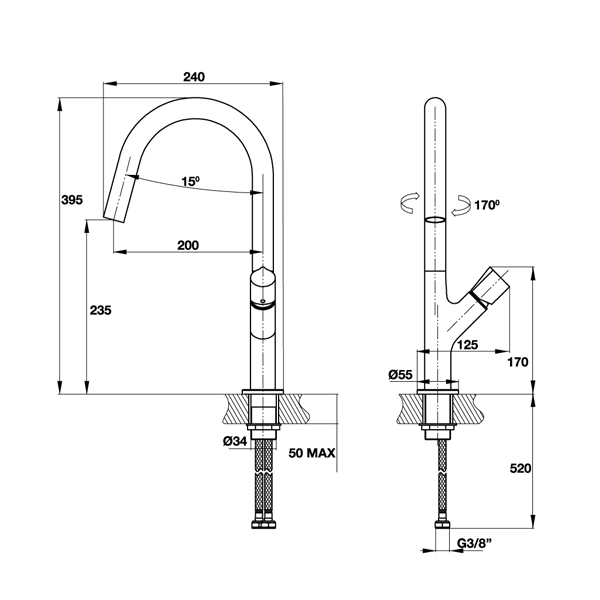 Vòi dạng vòi rửa bát 1 lỗi gắn bàn đá hoặc chậu đá